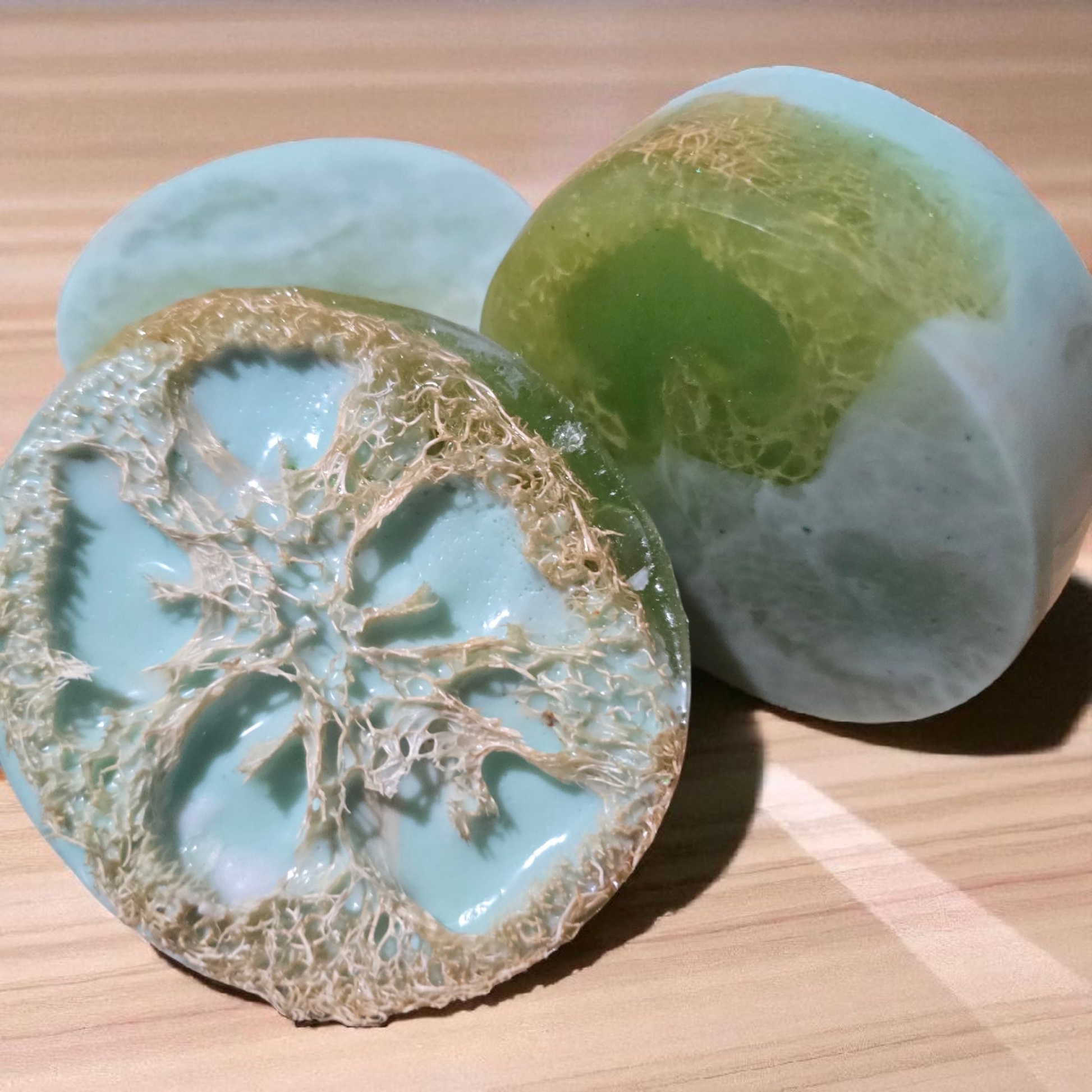 Ingredients: Loofah, Coconut Oil, Palm Oil, Safflower Oil, Glycerin, Goat Milk, Water, Sodium Hydroxide, Sorbitol, Propylene Glycol, Sorbitan Oleate, Oat Protein, Titanium Dioxide, Fragrance, Mica.