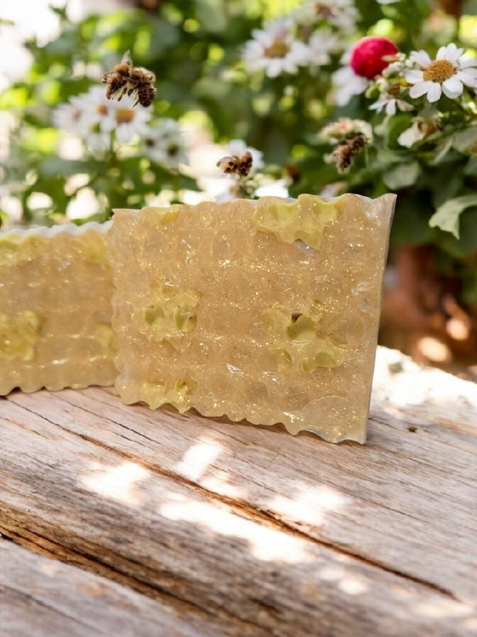 Hidden under the honeycomb designs are little bees!