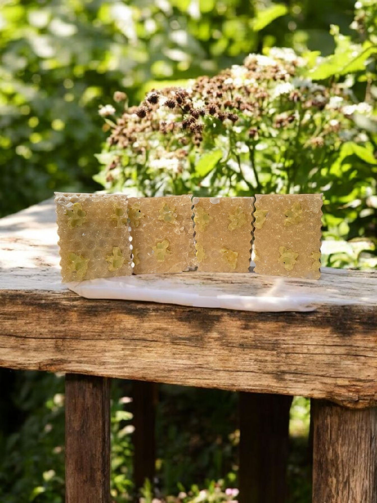 Each bar is approximately 3.5oz. Due to the handmade nature, no two bars look the same. Soaps are for external use only, do not eat! Please discontinue use if irritation occurs. Your bar will last longer if kept on a well draining dish or soap saver.